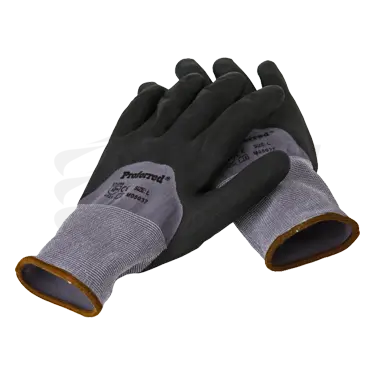 / BLACK Nitrile / Gray Liner Proferred Industrial Gloves (Medium) - 6 Pack