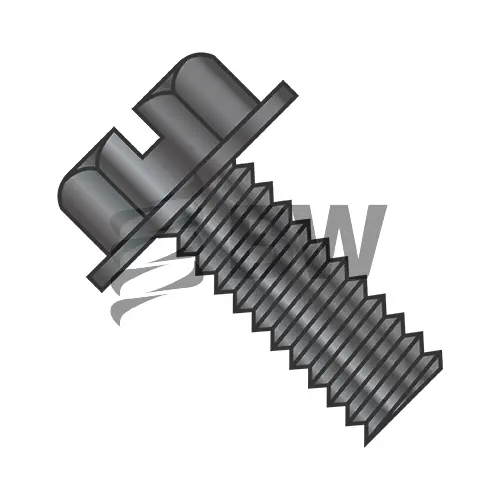 12-24 x 5/8 Slotted Indented He x Washer Head Machine Screw Fully Threaded Black O x ide, 1210MSWB