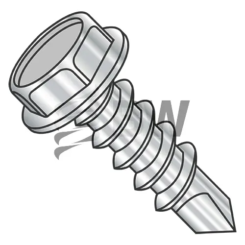 5/16-12X4 Unslotted Indent Hex Washer Self Drill Screw Full Thread 18-8 Stainless Steel, 3164KW188
