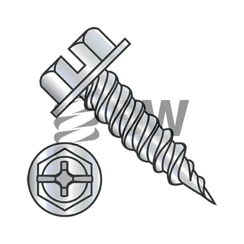 10-16 x 1 Combo (slot/phil) Ind He x washer 1/4in Across Flats F/T Self Piercing Screw Zinc, 1016PCW